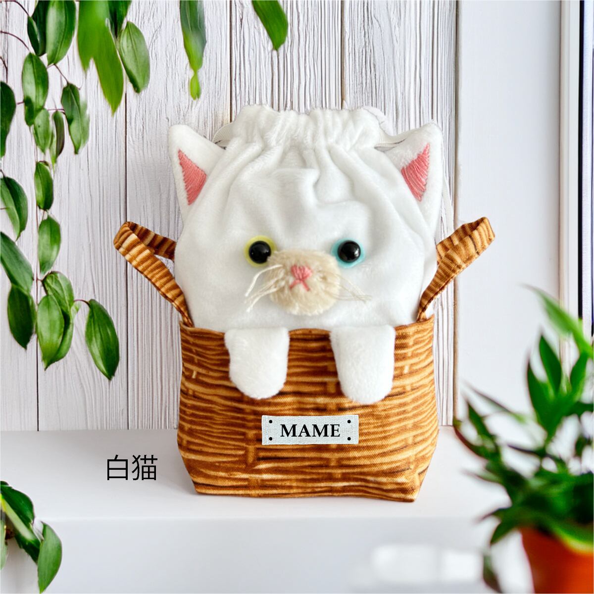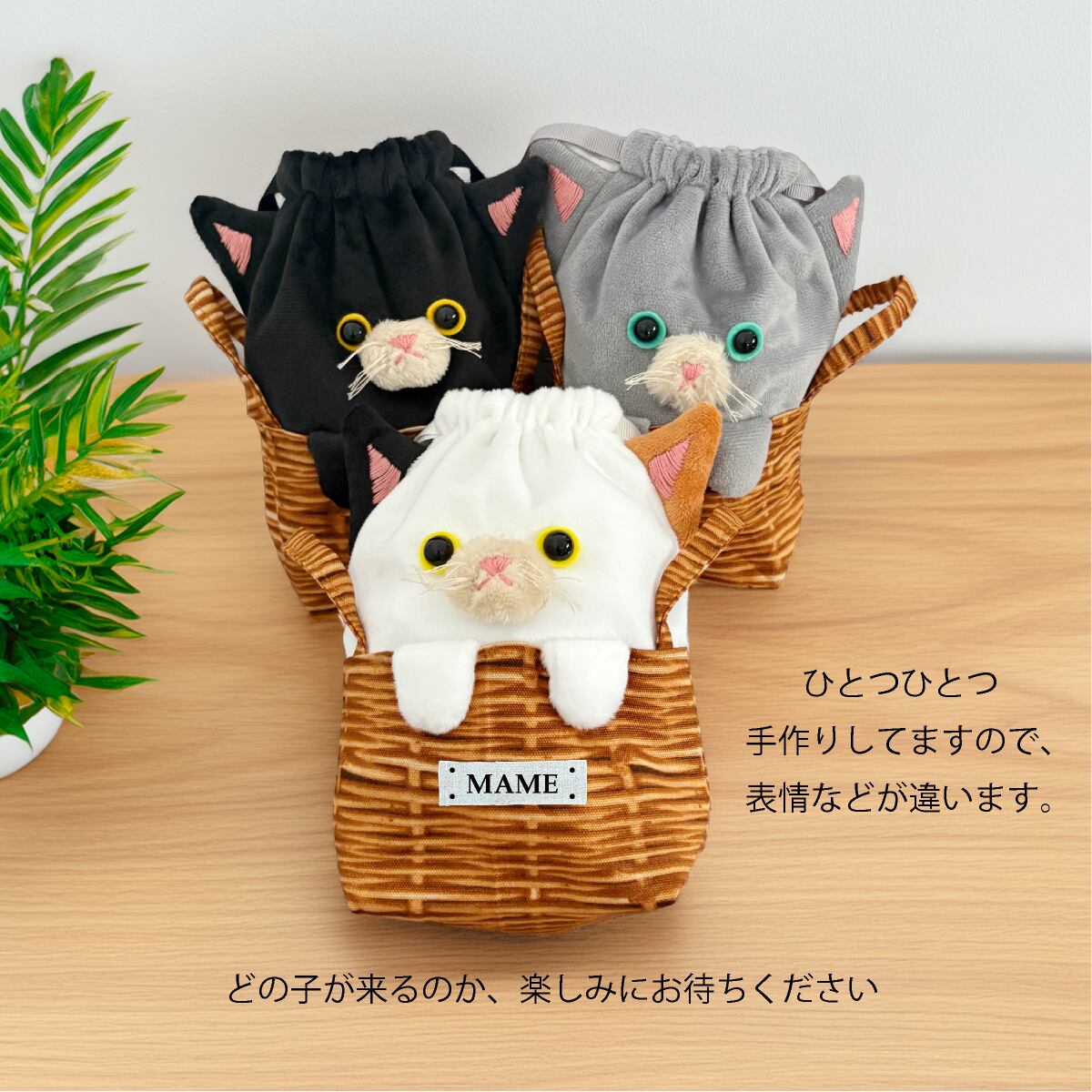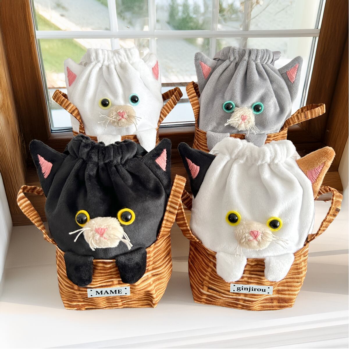 ネコ/猫/くろねこ/ハチワレ/三毛猫/巾着/誕生日/プレゼント/プチギフト/オーダー印刷/temegane